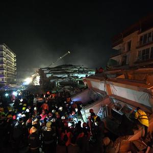 2月9日晚,在土耳其哈塔伊省安塔基亚市,中国救援队与土耳其救援队合力展开营救。