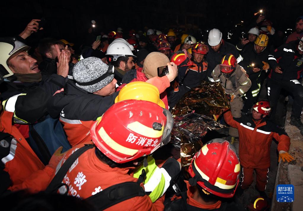 在土耳其南部地震重灾区哈塔伊省安塔基亚市,中国救援队9日晚同土耳其救援队合作,又救出一名被埋在楼房废墟下的女性幸存者。
