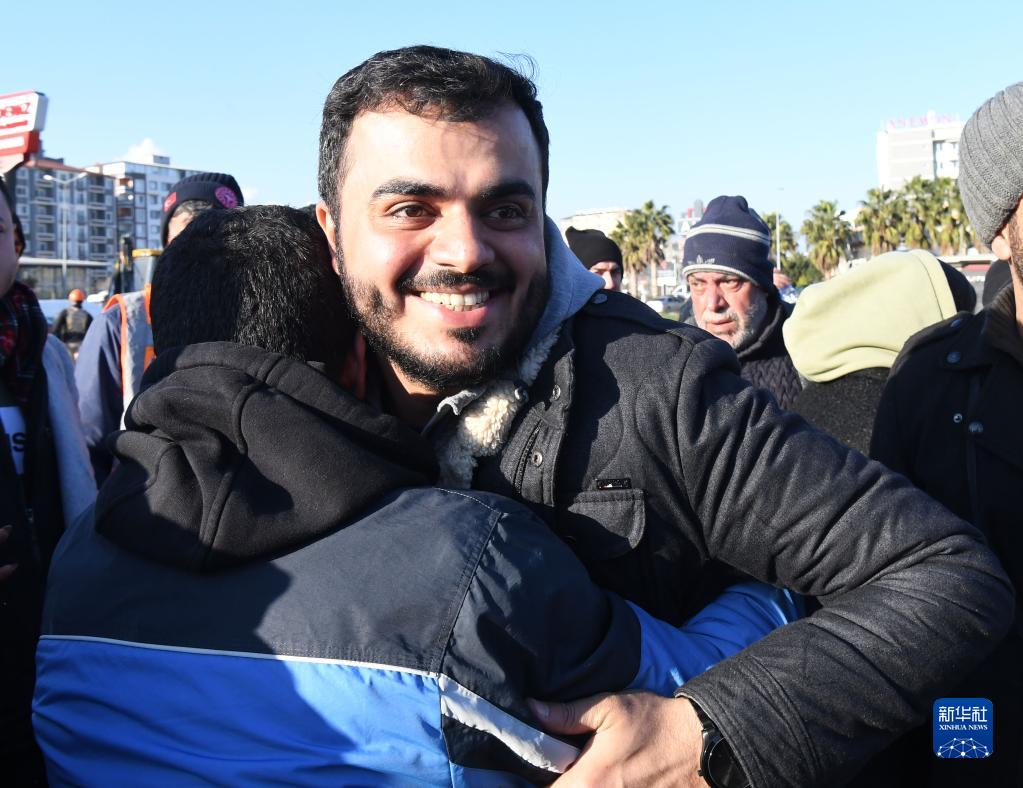 9日,在土耳其南部地震重灾区哈塔伊省安塔基亚市,中土救援队联手救出两名地震幸存者。