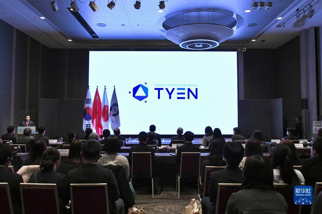 中日韩合作秘书处主办的“中日韩青年日”活动10日在日本东京线上线下同步举行,三国外交机构、友好团体、高校师生等约100人参与活动。中国驻日本大使孔铉佑、日本外务副大臣武井俊辅和韩国驻日大使尹德敏出席活动并同三国青年代表对话。新华社记者 岳晨星 摄