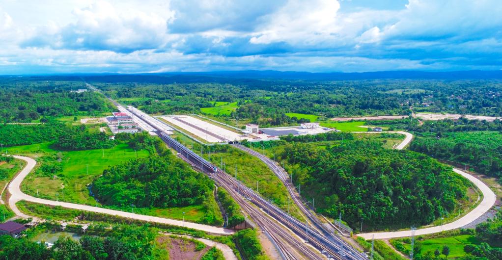 1月2日,“澜沧号”动车组列车运行在中老铁路老挝段线路上。新华社发(杨永全摄)
