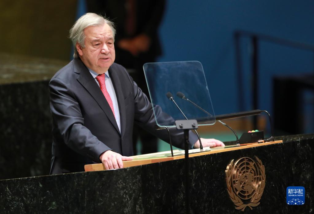 2月6日,在位于纽约的联合国总部,联合国秘书长古特雷斯发表讲话。