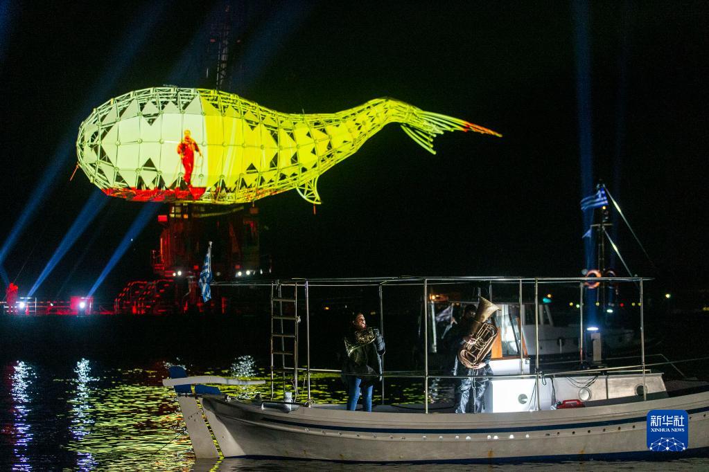 2月4日,在希腊雅典西部的埃莱夫西斯,人们在船上演奏音乐,庆祝2023“欧洲文化之都”活动开启。