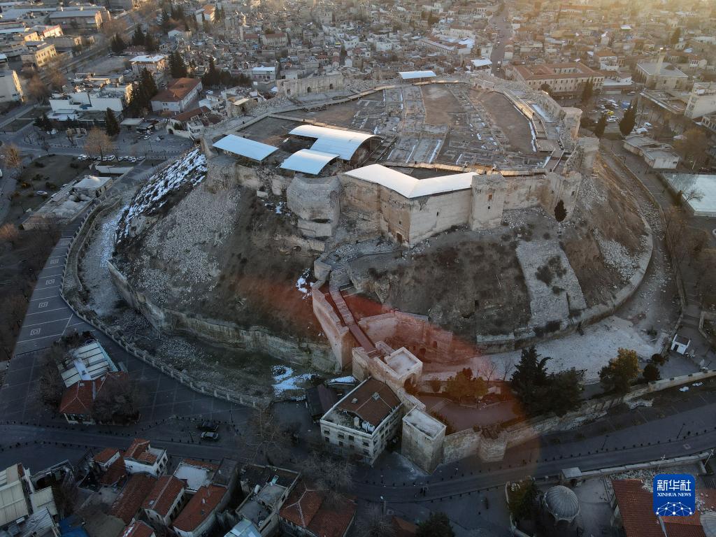 这是2月10日用无人机航拍的土耳其加济安泰普古堡。