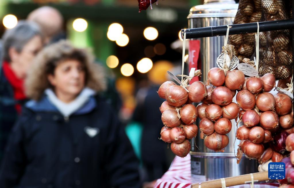 2月9日,人们在英国伦敦博罗市场内采购。