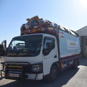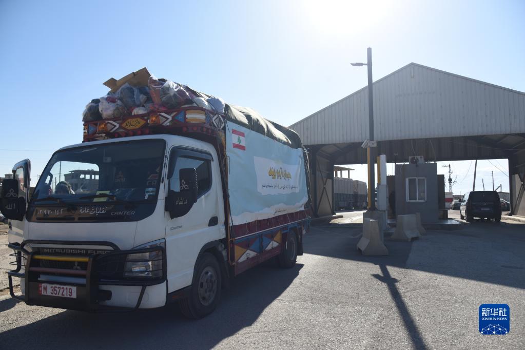 2月11日,装载救援物资的黎巴嫩车辆准备通过边境的阿里达口岸进入叙利亚。
