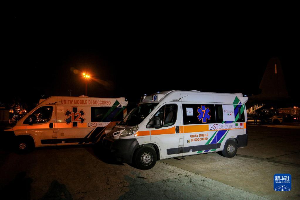 2月11日,意大利援助叙利亚的救护车运抵黎巴嫩贝鲁特拉菲克·哈里里国际机场。