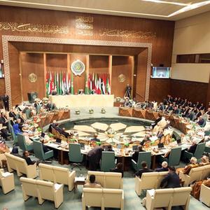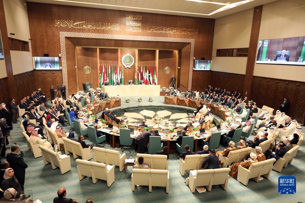这是2月12日在位于埃及首都开罗的阿拉伯联盟总部拍摄的会议现场。