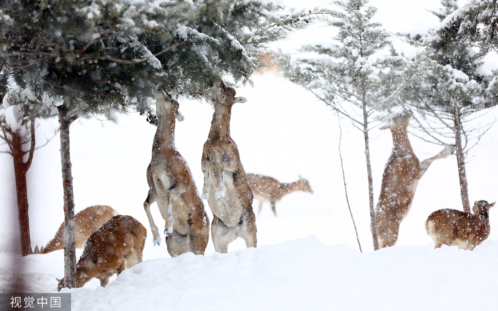 当地时间2月12日,伊朗德黑兰,大雪后,野生动物来到城市周围,在雪中玩耍。德黑兰的大雪和寒冷天气直接影响了靠近城区寻找食物的野生动物。(图片来源:视觉中国