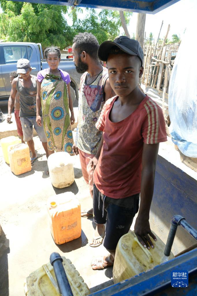2022年12月8日,在马达加斯加西南部沿海城市图利亚拉,当地人在集中供水房前打水。新华社记者 凌馨 摄
