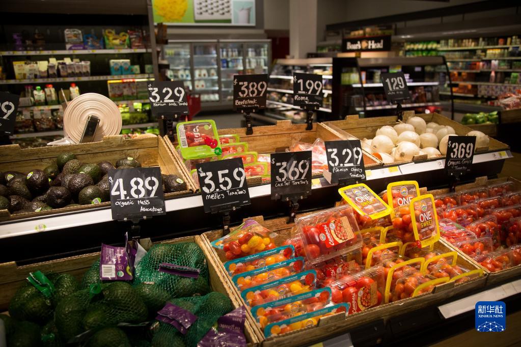这是2月14日在美国纽约市布鲁克林一家食品杂货店拍摄的商品价签。