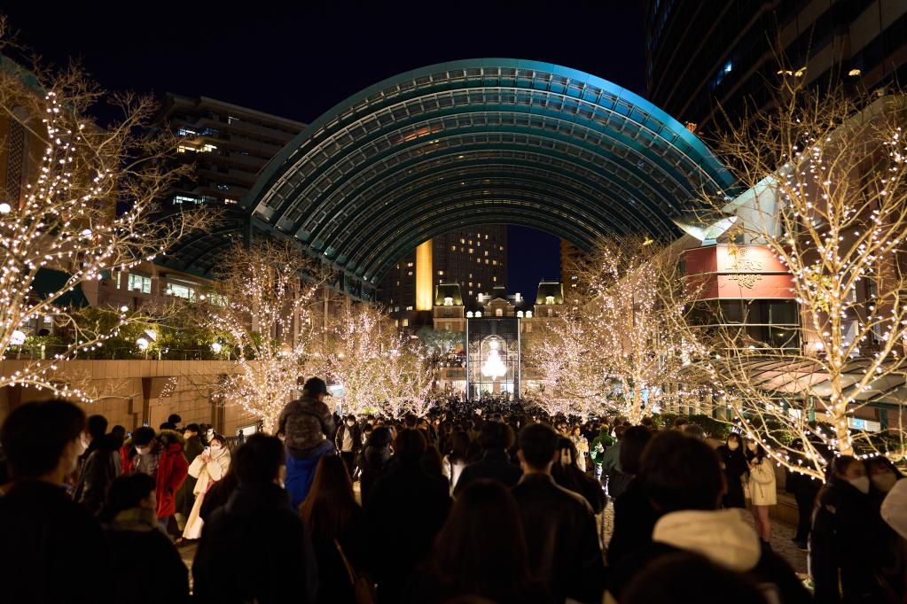2022年12月25日,游客在日本东京惠比寿花园观赏灯光秀。新华社记者张笑宇摄
