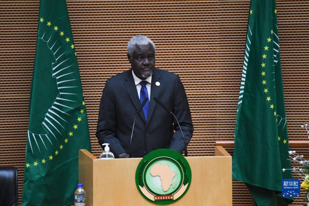 2月15日,在埃塞俄比亚亚的斯亚贝巴,非洲联盟(非盟)委员会主席法基在非盟执行理事会第42届常务会议开幕式上发表讲话。