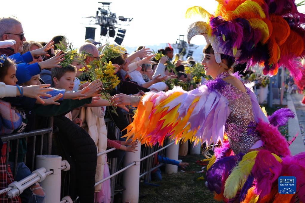 第138届法国尼斯狂欢节2月10日至26日举行。在狂欢节15日举办的“鲜花大战”活动中,表演者站在鲜花装饰的彩车上将鲜花抛向观众。