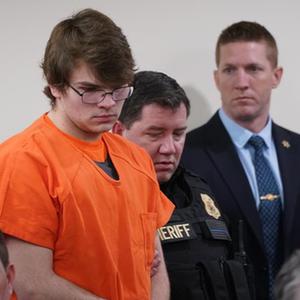 2月15日,美国布法罗枪击案凶手佩顿·金德伦在纽约州伊利县一家地方法院出席庭审。