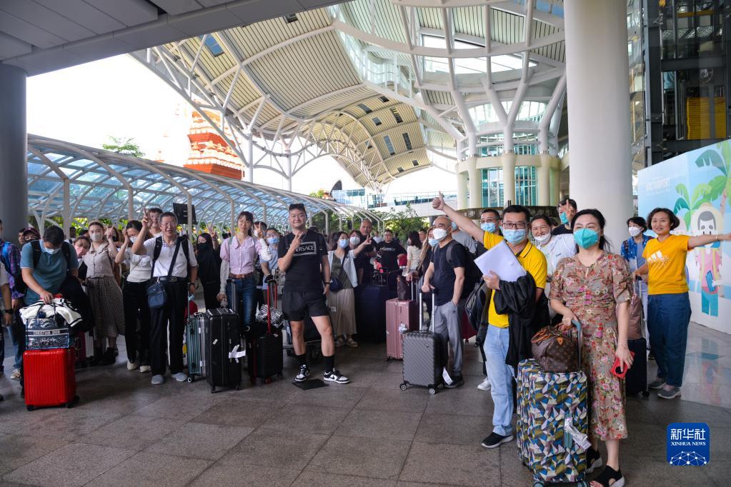 2月12日,一行从深圳出发的中国游客抵达印度尼西亚巴厘岛伍拉莱国际机场。