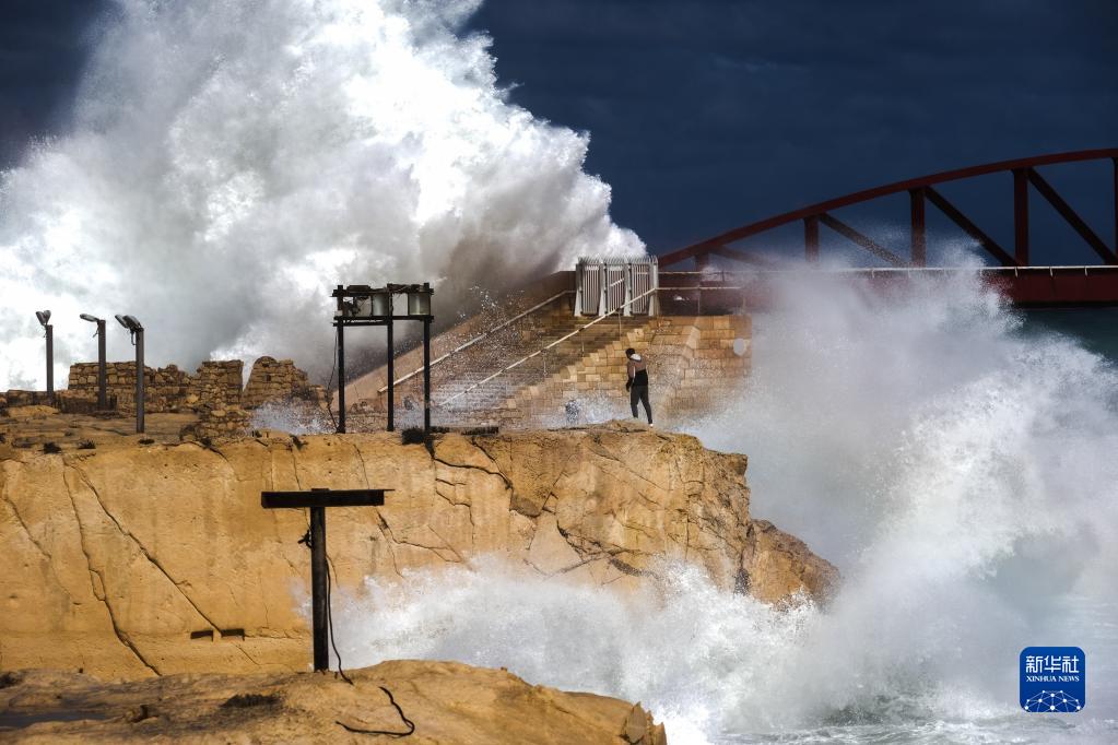 2月10日,在马耳他斯利马,大浪拍打海岸。