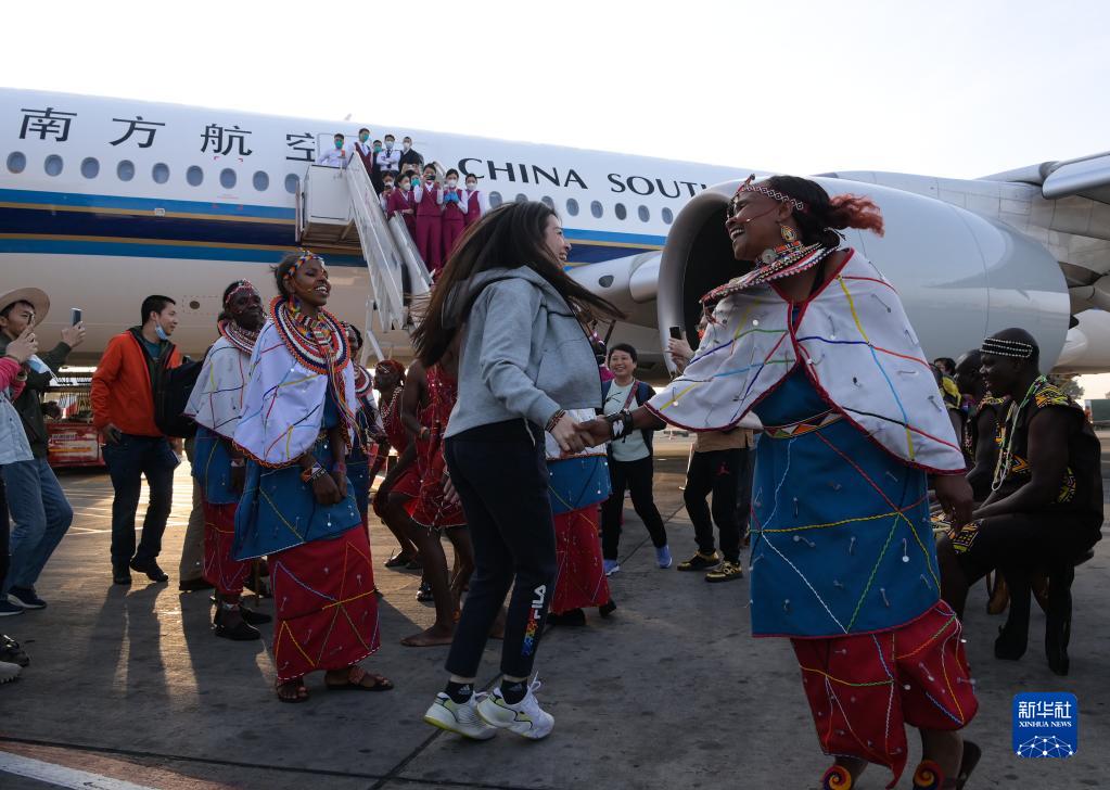 当地时间11日上午,搭载40名中国游客的中国南方航空公司CZ633航班降落在肯尼亚首都内罗毕乔莫·肯雅塔国际机场。这是中国试点恢复出境团队旅游后首批抵达肯尼亚的中国旅行团。