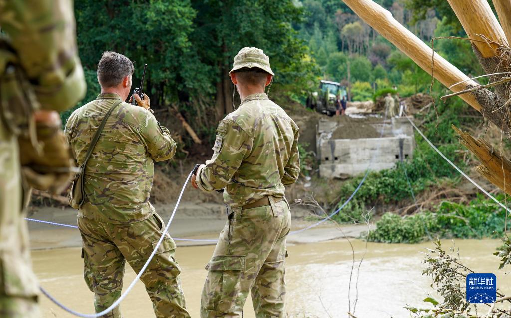 2月17日,新西兰国防军在新西兰北岛东部灾区开展救援工作。