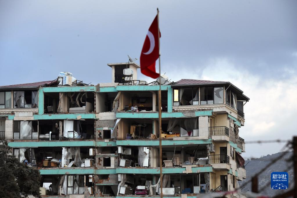 这是2月21日在土耳其哈塔伊省拍摄的在地震中受损的房屋。