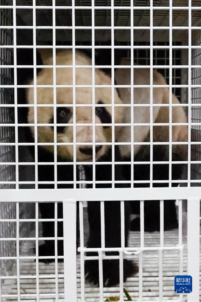 这是2月22日晚在成都双流机场海关拍摄的运抵中国的大熊猫“永明”。
