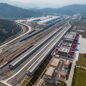 2月22日拍摄的中老铁路磨憨站(无人机照片)。