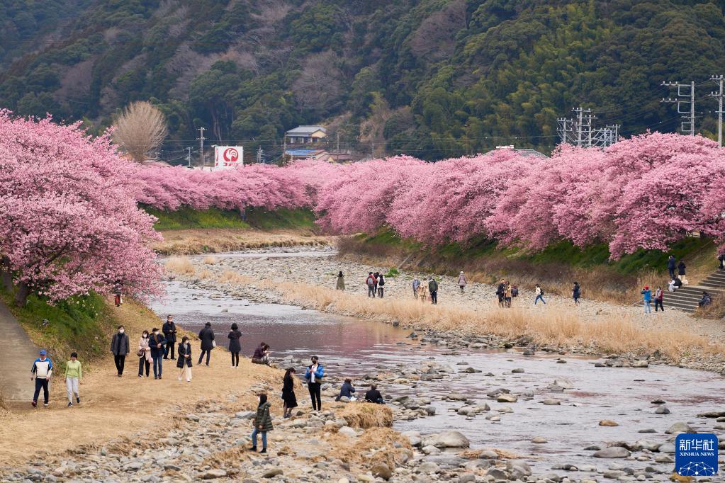 近日,日本静冈县河津町的河津樱满开,吸引众多游客前来观赏。河津樱于1955年在河津町被发现,以开花早、花期长而闻名。