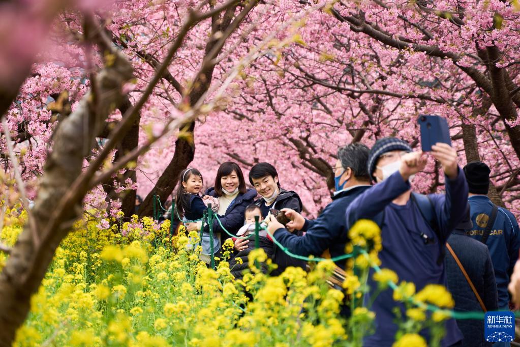 近日,日本静冈县河津町的河津樱满开,吸引众多游客前来观赏。河津樱于1955年在河津町被发现,以开花早、花期长而闻名。