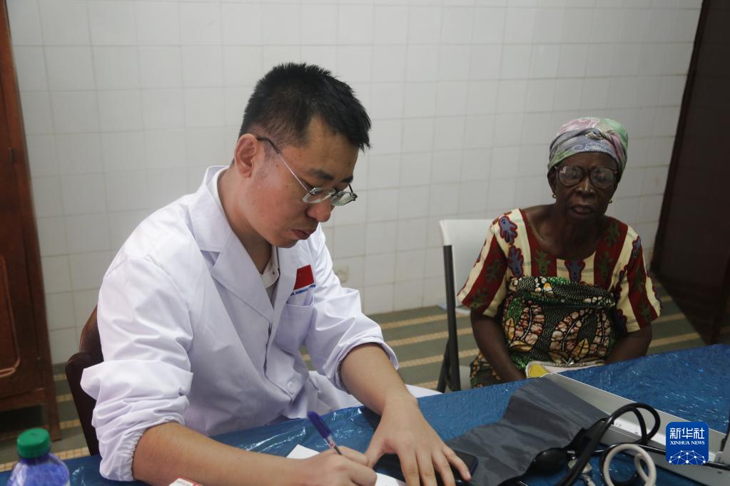中国第25批援多哥医疗队25日在该国北部科扎省卡拉市皮亚区进行义诊,为当地民众提供诊疗服务。