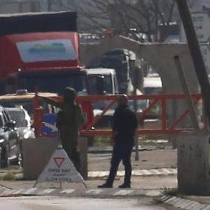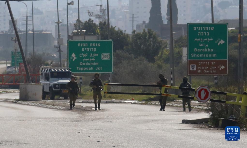 2月26日,以色列士兵在约旦河西岸城市纳布卢斯以南胡瓦拉镇一处检查站警戒。