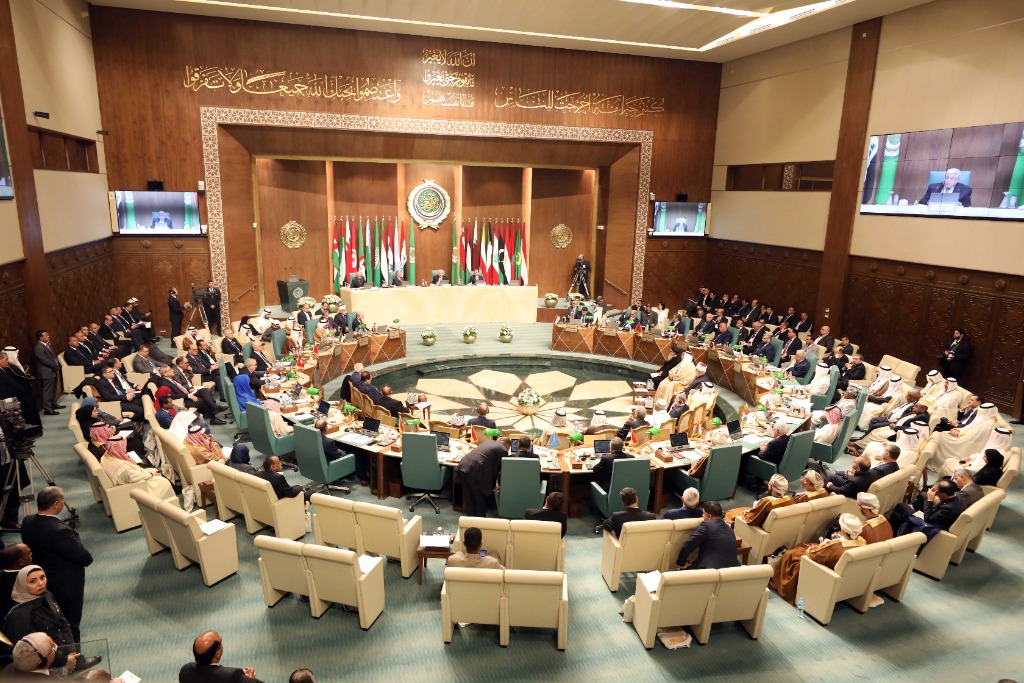 这是2月12日在位于埃及首都开罗的阿拉伯联盟总部拍摄的会议现场。埃及总统塞西12日表示,巴勒斯坦面临的紧张局势将危及地区安全稳定和阻碍“两国方案”的落实。新华社发(穆罕默德·阿里摄)