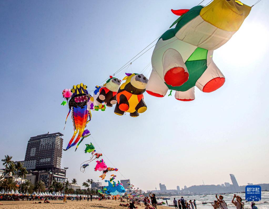 这是2月27日在泰国芭提雅海滩拍摄的大型风筝。泰国芭提雅近日举办海滩风筝节。