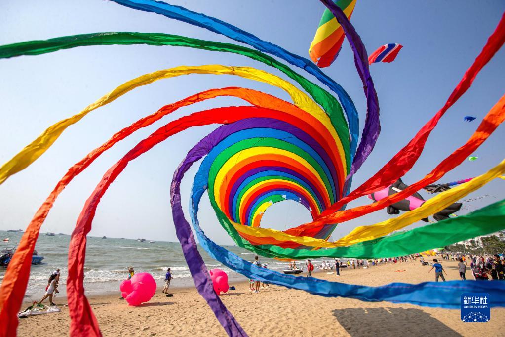 这是2月27日在泰国芭提雅海滩拍摄的大型风筝。泰国芭提雅近日举办海滩风筝节。