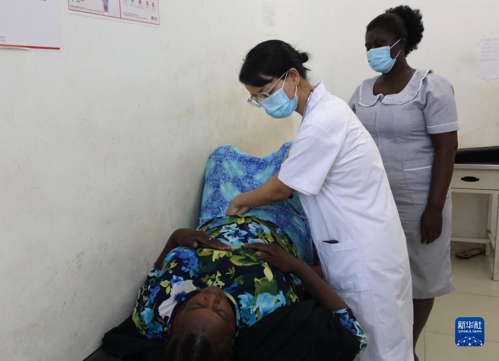 2月27日,在位于塞拉利昂首都弗里敦市郊的塞拉利昂-中国友好医院,一名中国医疗队医生为患者检查身体。