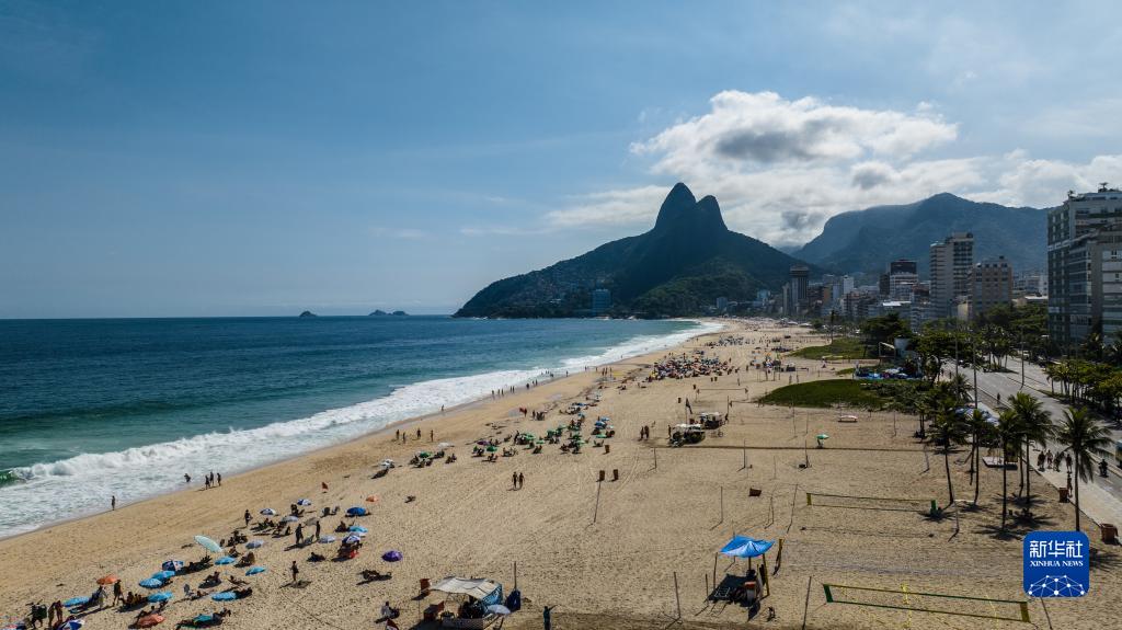 这是3月1日拍摄的巴西里约热内卢伊帕内马海滩和两兄弟山(无人机照片)。