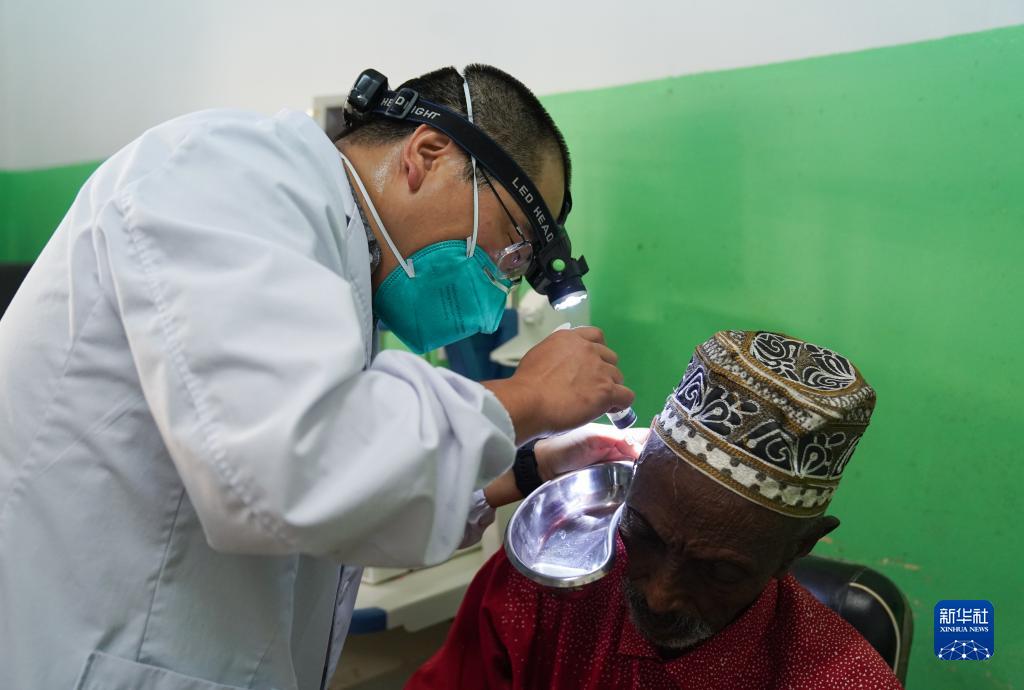 3月1日,在吉布提首都吉布提市贝尔蒂耶医院,中国第21批援吉布提医疗队医生王旭峰为当地患者诊治。