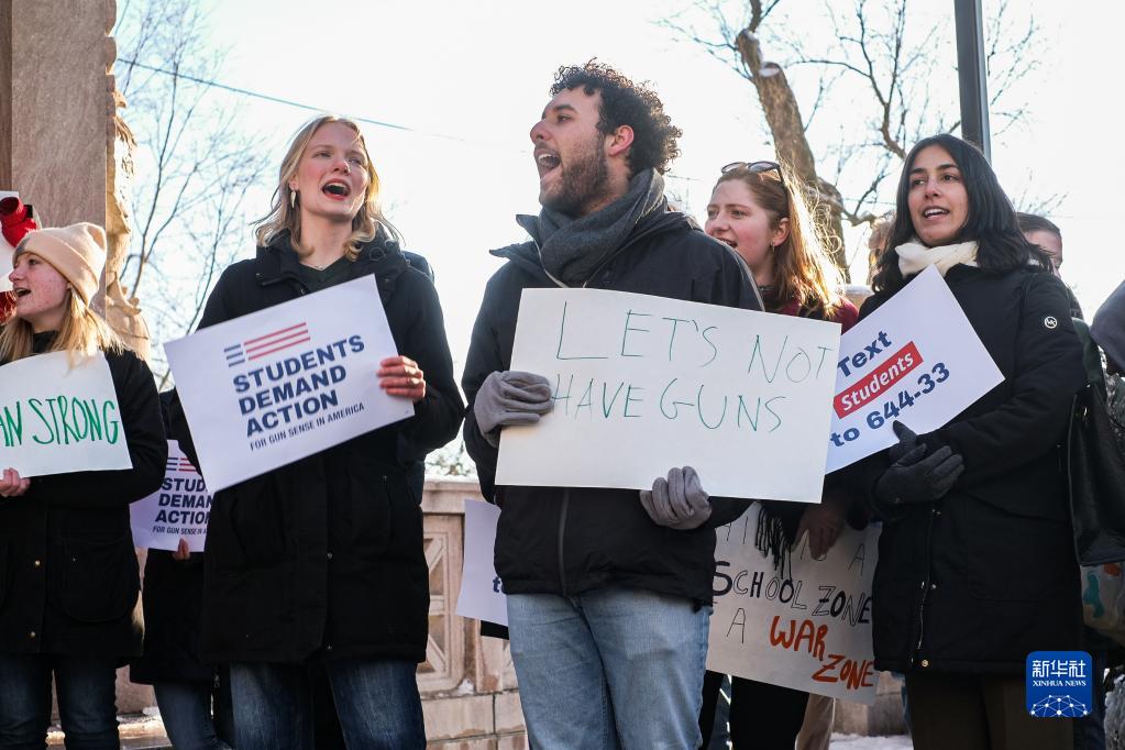 2月24日,在美国马萨诸塞州波士顿,当地学生参加反枪支暴力集会,悼念密歇根州立大学枪击事件受害者。