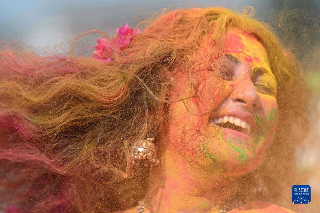 洒红节也叫胡里节,人们在节日期间互相涂抹颜料,迎接春天的到来。