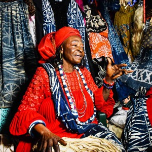 恩多普是主要流行于喀麦隆西部大区的一种布料,可以制成衣物、帽子和项链等。制作过程中,先用墨线在白色棉布上绘制纹样,再用干燥的棕榈叶脉做线把纹样扎起来,经靛蓝的植物染料浸染后,拆去棕榈叶脉,便得到蓝底白纹的恩多普。如今,众多喀麦隆妇女投入恩多普制作领域,这不仅改善了她们的生活,也推动了文化的传承。