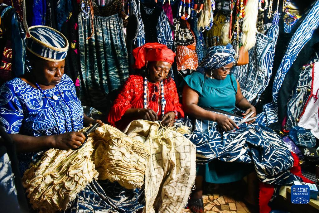 恩多普是主要流行于喀麦隆西部大区的一种布料,可以制成衣物、帽子和项链等。制作过程中,先用墨线在白色棉布上绘制纹样,再用干燥的棕榈叶脉做线把纹样扎起来,经靛蓝的植物染料浸染后,拆去棕榈叶脉,便得到蓝底白纹的恩多普。如今,众多喀麦隆妇女投入恩多普制作领域,这不仅改善了她们的生活,也推动了文化的传承。