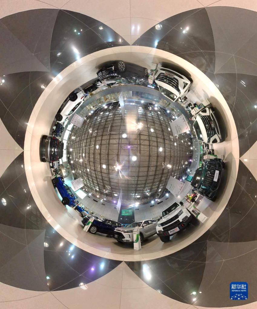 这是3月5日在科威特费尔瓦尼耶省中国汽车专场嘉年华活动上拍摄的中国汽车(全景相机拍摄)。