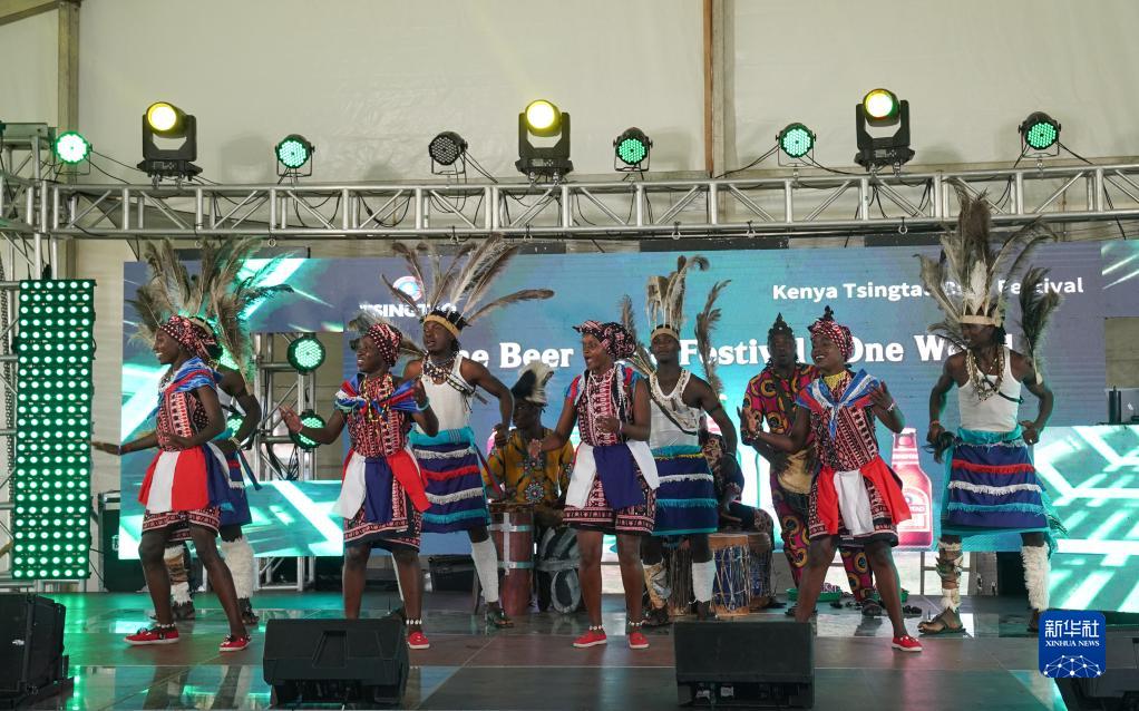 3月11日,艺术家们在肯尼亚首都内罗毕举办的青岛啤酒节上表演歌舞。