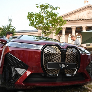 这是2021年9月8日在德国慕尼黑国际车展宝马汽车户外展区拍摄的一台宝马iX电动车。新华社记者逯阳摄