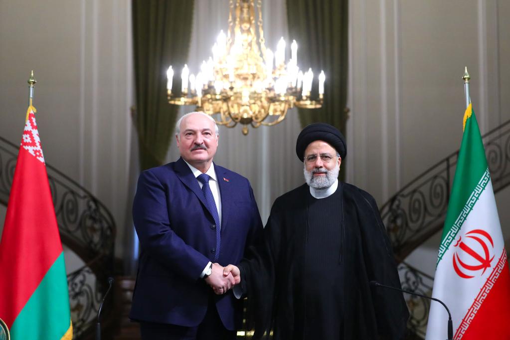 3月13日,在伊朗德黑兰,伊朗总统莱希(右)与白俄罗斯总统卢卡申科出席联合记者会。