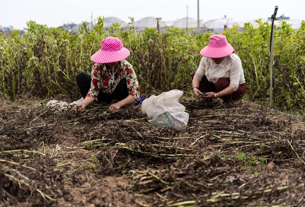 2020年3月24日,工作人员在中国昆明市农业科技成果转化中心宜良基地内采集蚕豆种子。新华社发(陈欣波摄)