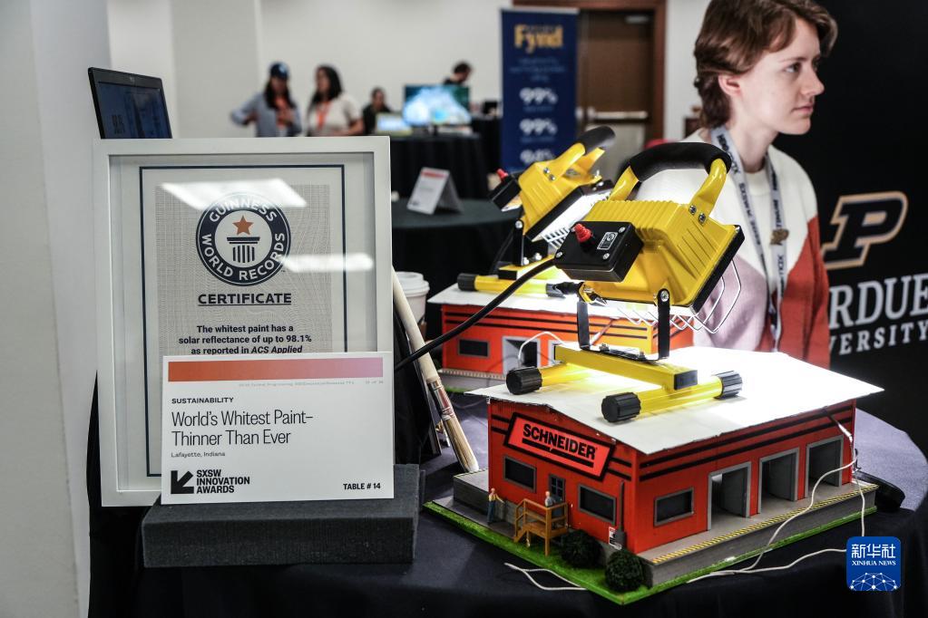 3月11日,在“西南偏南”大会和艺术节上,美国普渡大学展出一种已获吉尼斯世界纪录认证的纳米多孔涂料,可用于运输工具外部降温,减少空调能耗。
