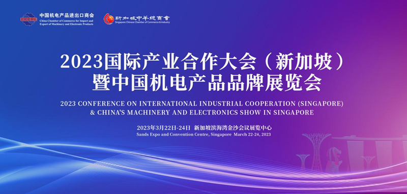 新华网新加坡3月15日电 在中国商务部、新加坡贸易与工业部的指导和支持下,由中国机电产品进出口商会、新加坡中华总商会联合主办的2023国际产业合作大会(新加坡)暨中国机电产品品牌展览会,将于3月22日至24日在新加坡滨海湾金沙会议展览中心举办。