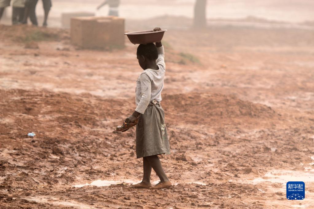 这是3月17日在马拉维布兰太尔一处临时安置营地拍摄的小女孩。