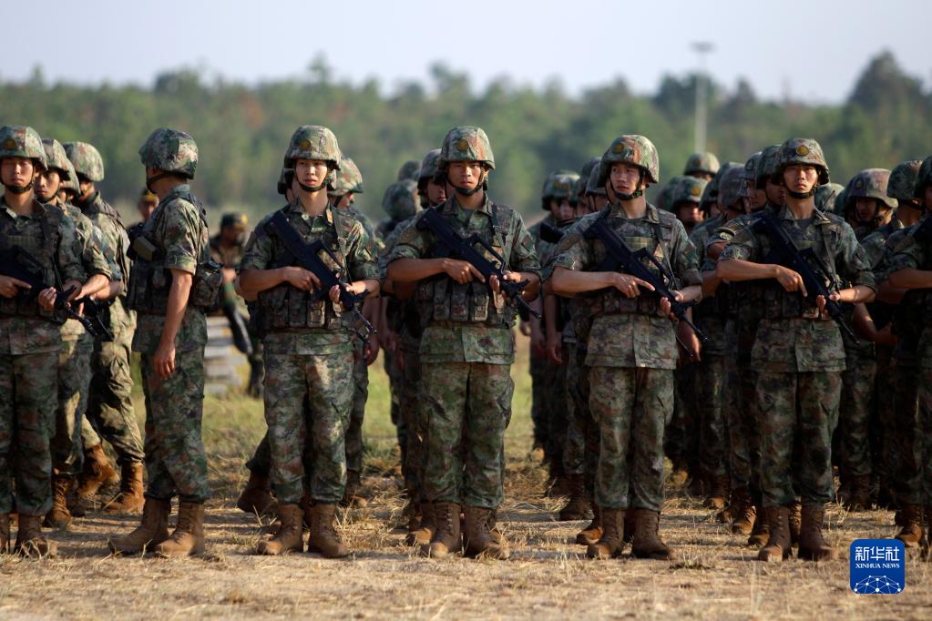 3月23日,中国军人在柬埔寨王家军某训练基地参加中柬“金龙-2023”联演。