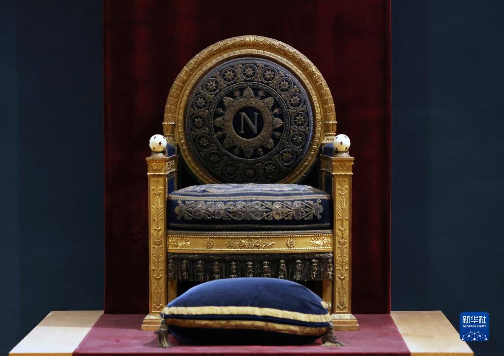 这是3月22日在法国巴黎卢浮宫拍摄的拿破仑一世宝座。